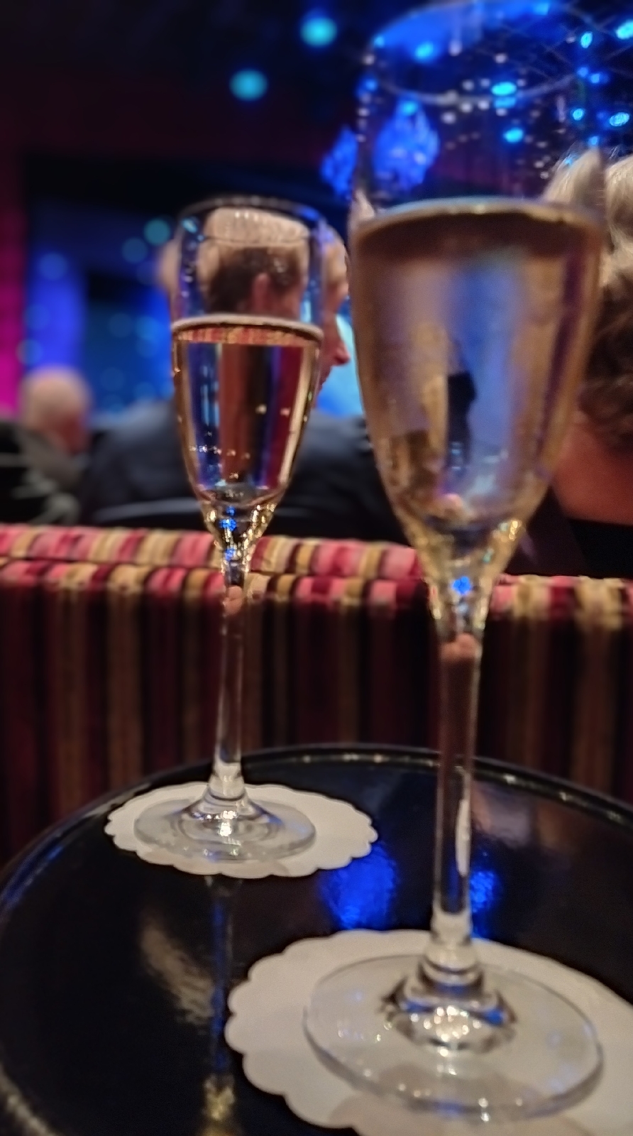 Discovered yesterday that we have a drinks package, not coffees or speciality teas but most alcohol. Big mistake - we are not sure how but think it has something to do with booking the cruise on black Friday. There is a lovely - package 3 on both our cards that makes our drinks reverse themselves and all our alcoholic beverage bills zero. Even the waiters gratuity is included. Yesterday I drank 3 glasses of house bubbly and 1 margarita which was awful in comparison to the one with Jacqueline at the Beach hotel. Our cabin is bigger than usual and very comfortable though there are few TV channels and the TV is smaller than my smallest computer screen.